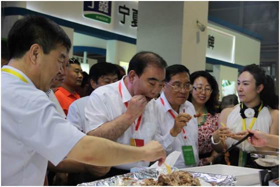參會領導巡展并品嘗參展羊肉