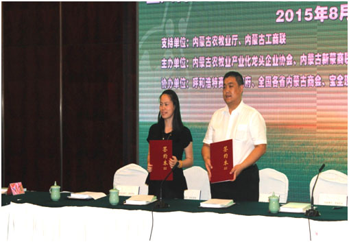 會(huì)議上,寶全現(xiàn)代農(nóng)貿(mào)物流園總裁白龍與內(nèi)蒙古新蒙商聯(lián)合會(huì)秘書(shū)長(zhǎng)馬廣、海南省內(nèi)蒙古商會(huì)會(huì)長(zhǎng)海靈光、天津市內(nèi)蒙古商會(huì)副會(huì)長(zhǎng)賈振山、天津市有機(jī)農(nóng)業(yè)發(fā)展協(xié)會(huì)副秘書(shū)長(zhǎng)訾立剛簽訂全國(guó)特色產(chǎn)品館合作協(xié)議,與瑜利國(guó)際貿(mào)易(上海)有限公司總經(jīng)理鄒川沙簽訂國(guó)際商品館合作協(xié)議。