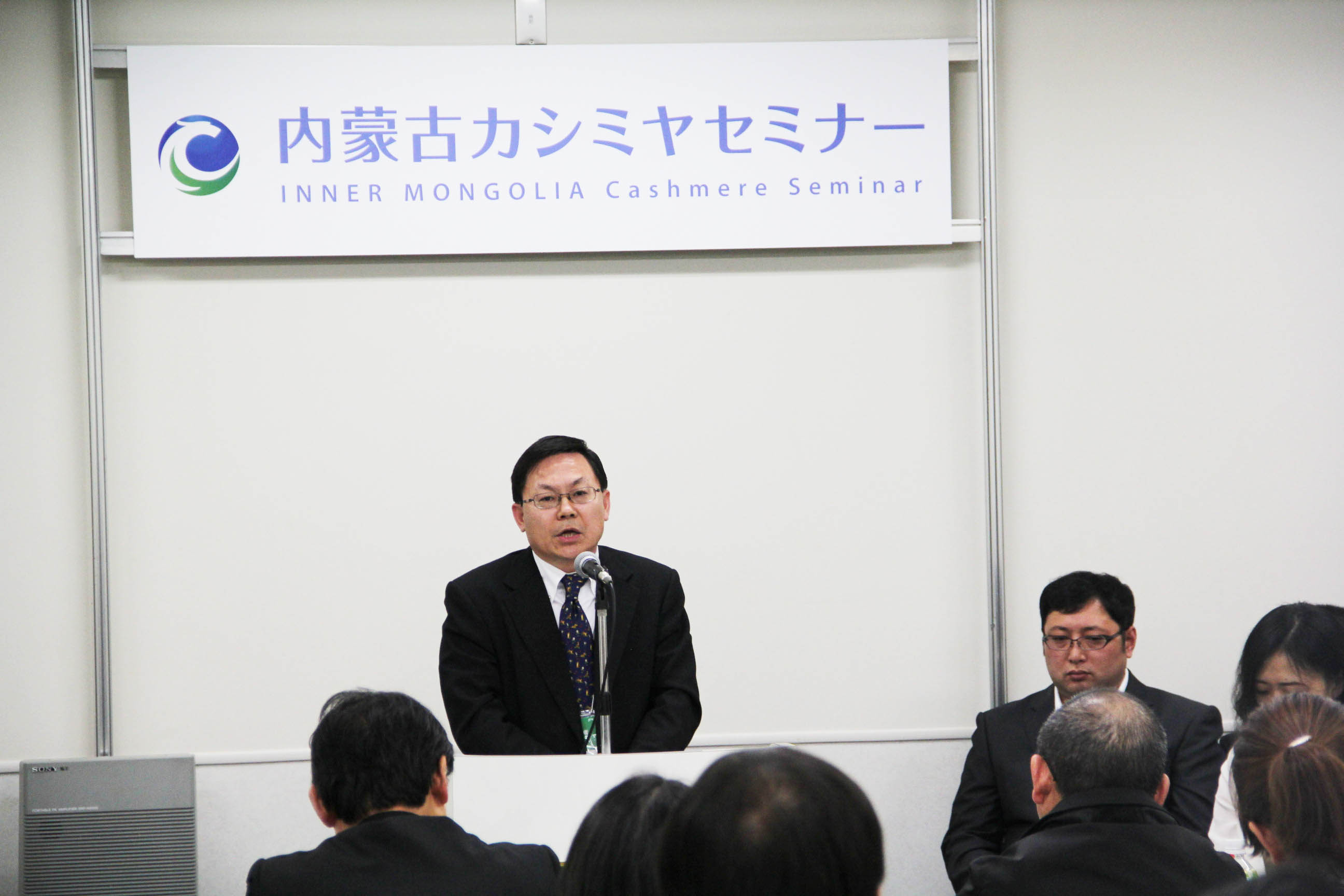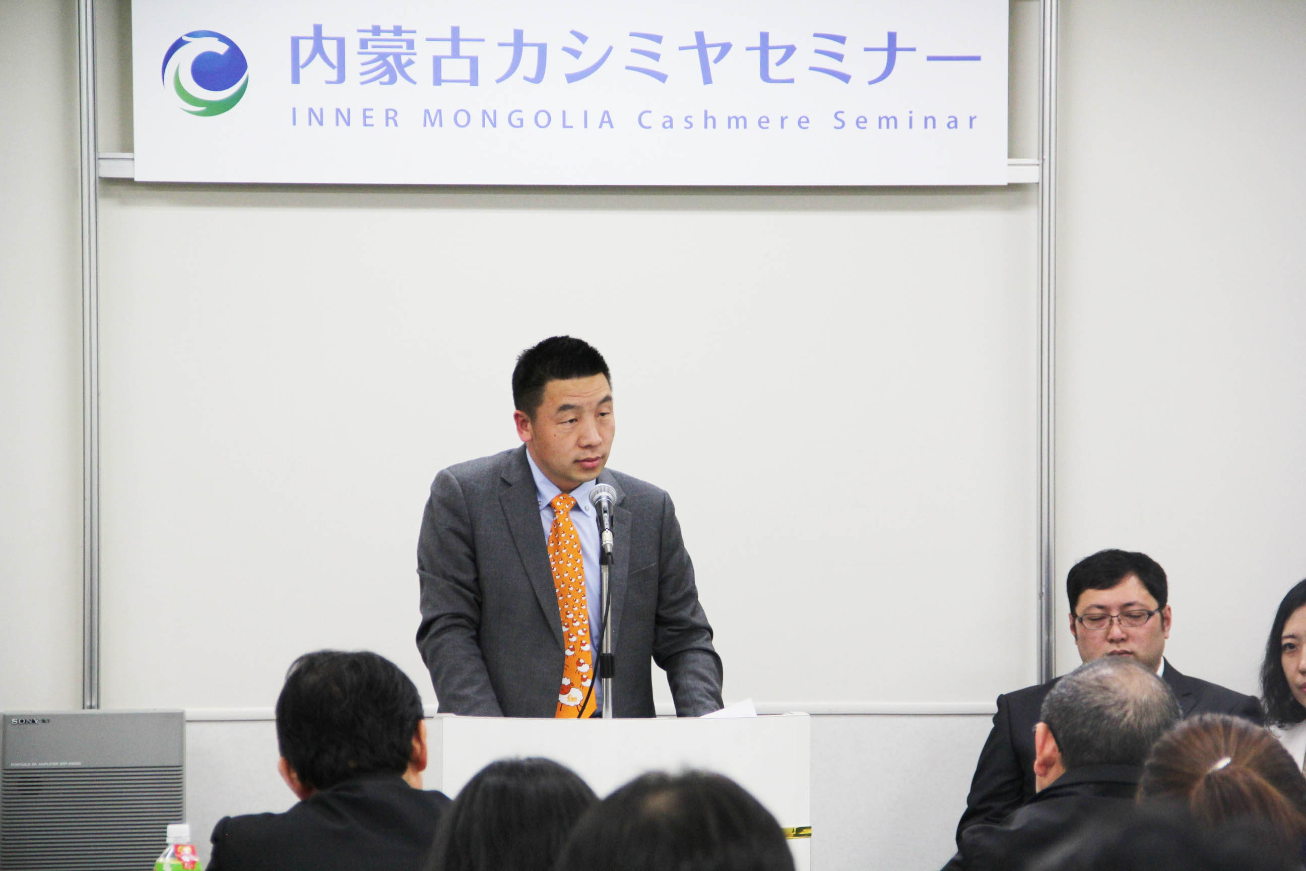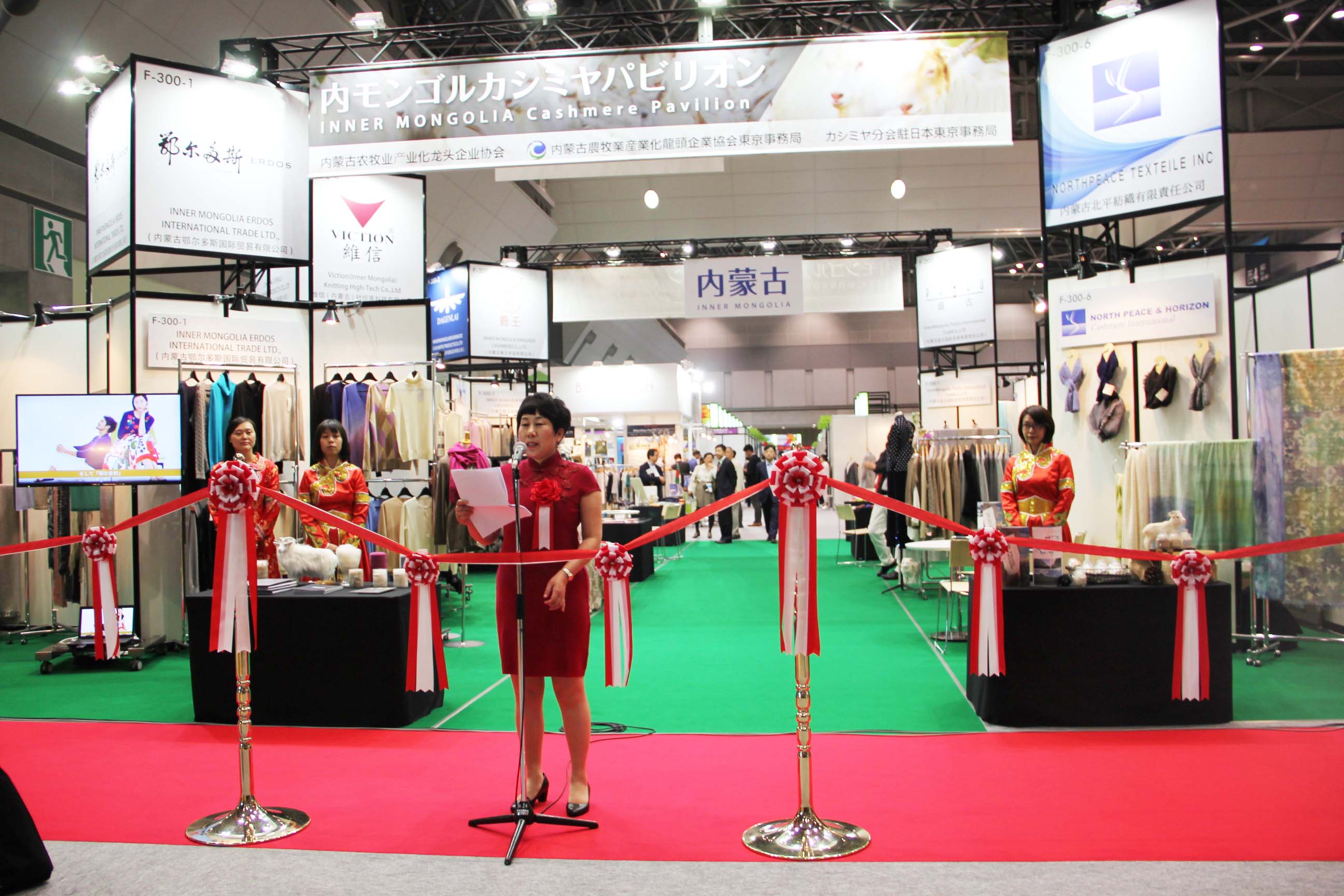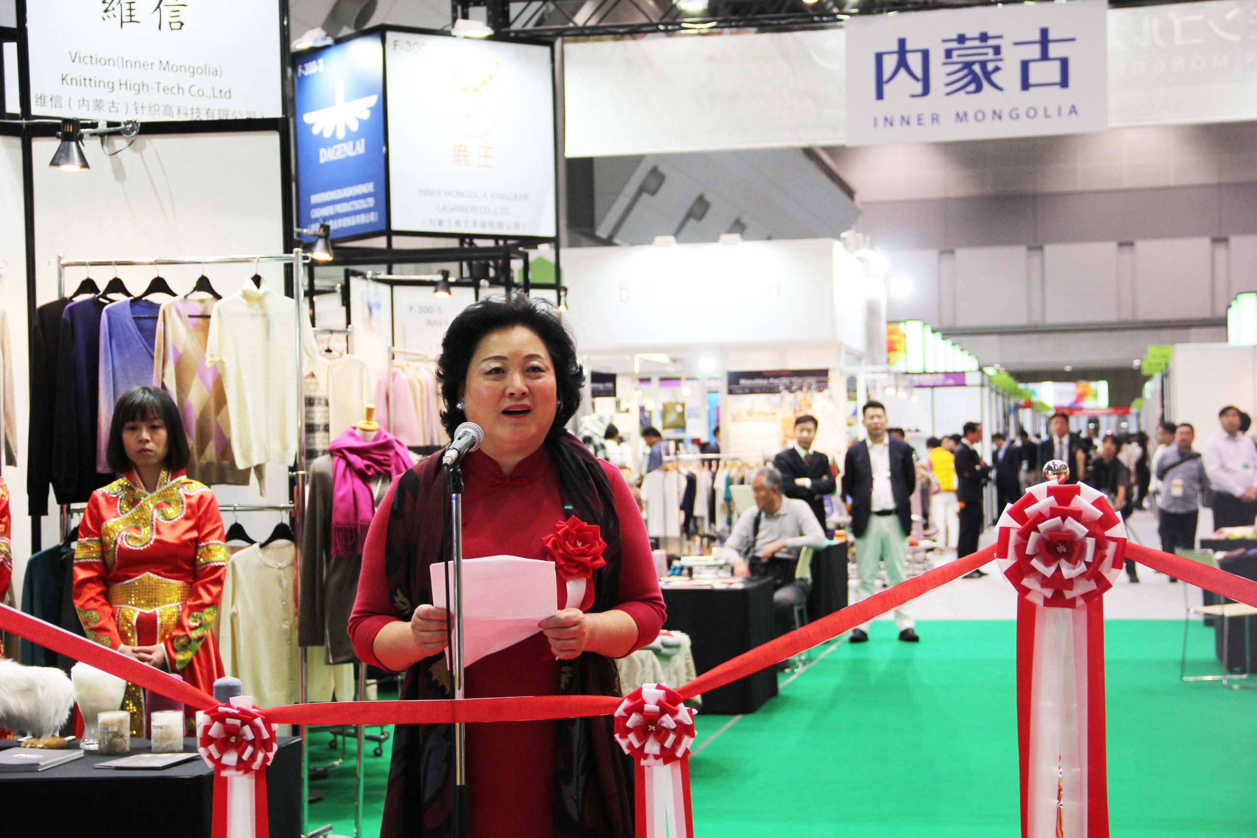 2016426日上午11時,在內(nèi)蒙古羊絨展區(qū)前,舉行了盛大的開業(yè)剪彩儀式,內(nèi)蒙古自治農(nóng)牧業(yè)廳產(chǎn)業(yè)化處副處長郟金梅、內(nèi)蒙古農(nóng)牧產(chǎn)業(yè)化龍頭企業(yè)協(xié)會會長閆樹春、內(nèi)蒙古農(nóng)牧產(chǎn)業(yè)化龍頭企業(yè)協(xié)會羊絨產(chǎn)業(yè)分會會長王風之出席剪彩儀式,并分別就政府支持、協(xié)會服務(wù)和企業(yè)自律發(fā)展等幾方面做了精彩致辭。郟金梅副處長表示,希望通過此次活動,使得社會各界代表能夠贏得機遇、拓展空間,取得豐碩的成果,同時真誠盼望各方來賓、新老朋友能夠進一步了解內(nèi)蒙古羊絨,認識內(nèi)蒙古羊絨,并以此為契機,加強內(nèi)蒙古羊絨界與日本企業(yè)的合作,攜手發(fā)展,實現(xiàn)共贏,共創(chuàng)輝煌。閆樹春會長在致辭中講到,我們此行不僅是要展示內(nèi)蒙古羊絨原料優(yōu)勢地位和行業(yè)加工的專業(yè)性,更希望能充分利用各個平臺廣泛交流,探討合作途徑的契合點,推動兩國羊絨行業(yè)多方共贏,共同提升全球市場對羊絨產(chǎn)品的認知度,希望我們的羊絨企業(yè)能團結(jié)一致,實現(xiàn)羊絨產(chǎn)業(yè)的可持續(xù)發(fā)展。羊絨產(chǎn)業(yè)分會會長王風之在致辭中表示,通過內(nèi)蒙古農(nóng)牧業(yè)產(chǎn)業(yè)化龍頭企業(yè)協(xié)會羊絨分會的平臺,我們勢必會在培育超細超長型產(chǎn)絨山羊、提升優(yōu)質(zhì)種群的規(guī)模、建立行業(yè)質(zhì)量標準和抱團發(fā)展,積極進行海外市場渠道、品牌、投資等多方面取得突破性進展,致力于將中國內(nèi)蒙古羊絨打造成為全球性的產(chǎn)業(yè)品牌。