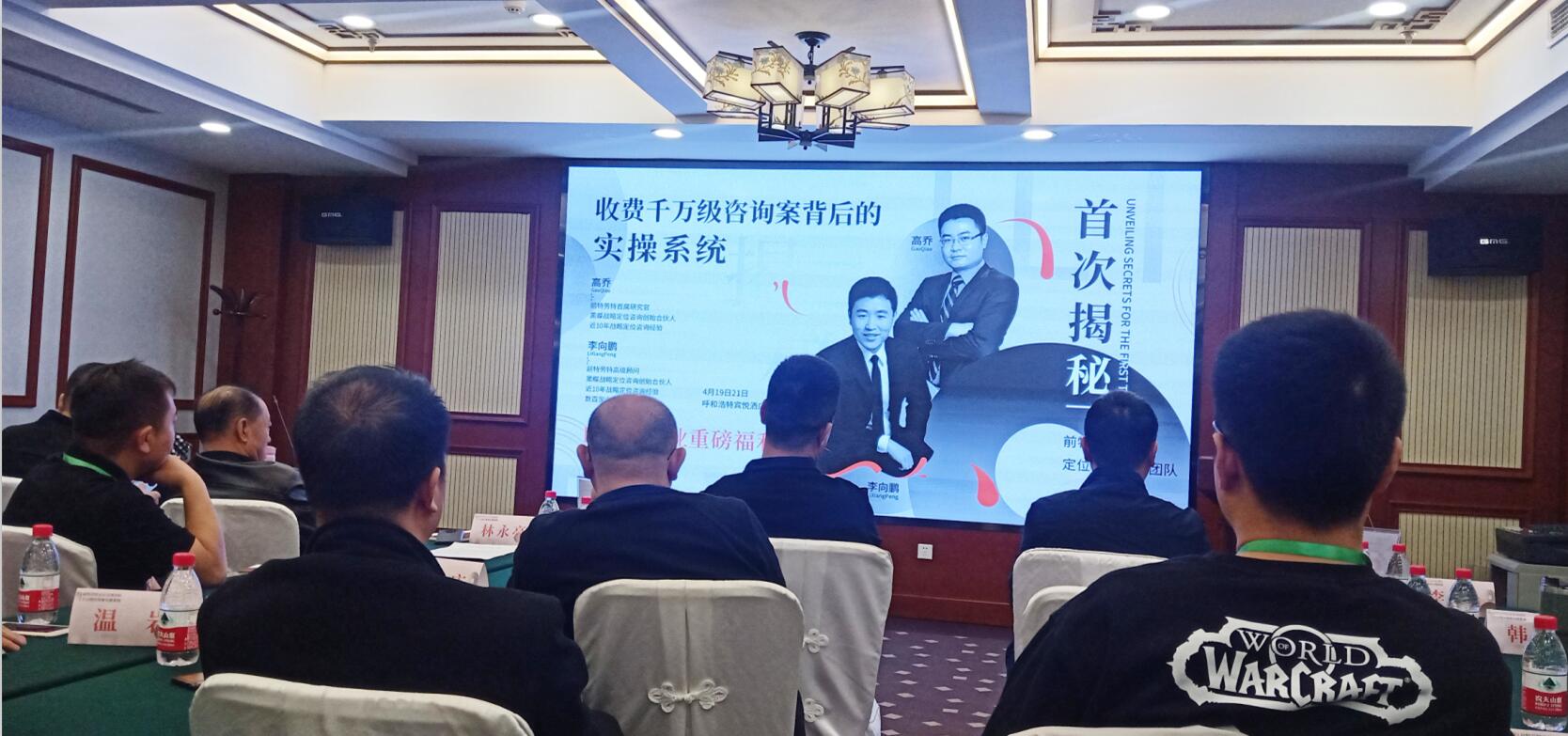 2021419日上午,由內(nèi)蒙古農(nóng)牧業(yè)產(chǎn)業(yè)化龍頭企業(yè)協(xié)會和上海黑蝶戰(zhàn)略定位主辦,呼市成略定位咨詢承辦的前特勞特定位首席團隊-首次揭秘“收費千萬級咨詢案背后的實操系統(tǒng)”課程在呼和浩特市賓悅大酒店舉辦。協(xié)會執(zhí)行會長林永亮應邀參加本次課程。
