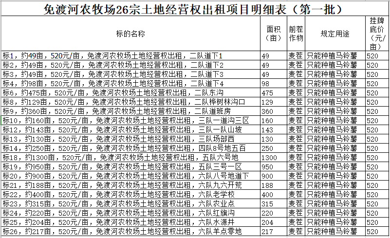 4.規(guī)定用途:第一批種植馬鈴薯,第二批種植甜菜,詳情以明細表為準(zhǔn)