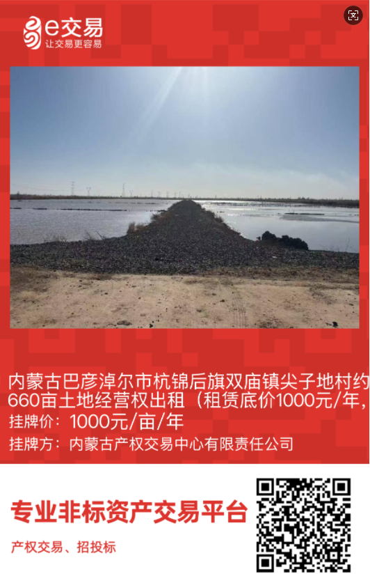 巴彥淖爾市首宗規(guī)范化農(nóng)村產(chǎn)權(quán)交易掛牌!杭錦后旗雙廟鎮(zhèn)尖子地村660畝高標(biāo)準(zhǔn)農(nóng)田經(jīng)營權(quán)公開出租