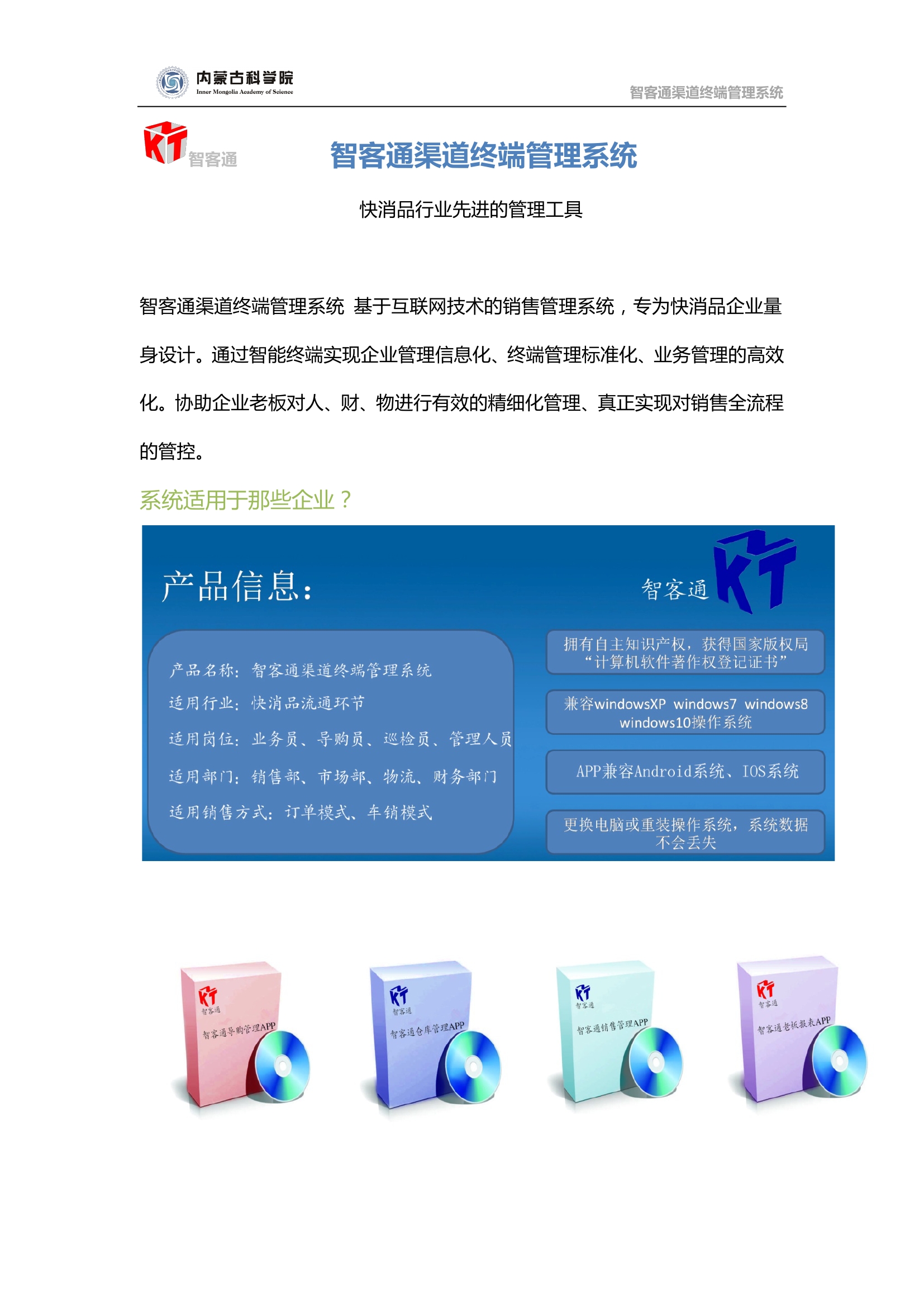 內(nèi)蒙古科學(xué)院有限責(zé)任公司智客通渠道終端管理系統(tǒng)