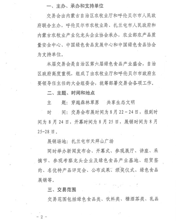 關于舉辦2013·內(nèi)蒙古(扎蘭屯)第六屆綠色食品交易會的通知