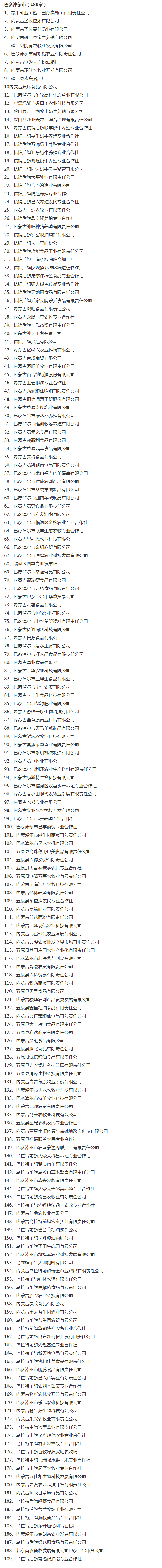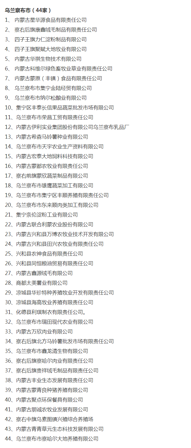 企業(yè)名稱:截止2017年末盟市級農業(yè)產業(yè)化重點龍頭企業(yè)名單