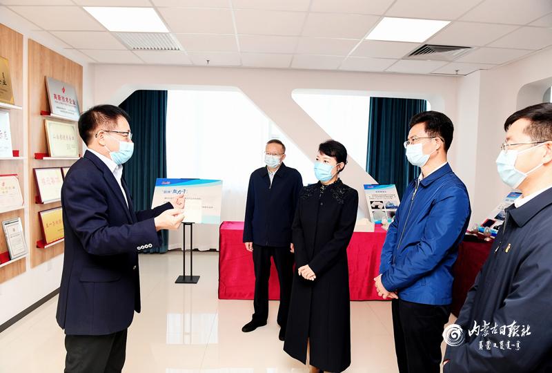 9月16日,自治區(qū)黨委副書記、自治區(qū)主席王莉霞,自治區(qū)黨委常委、自治區(qū)常務副主席張韶春在超牌新材料公司調研。內蒙古日報社融媒體記者 韓卿立 攝